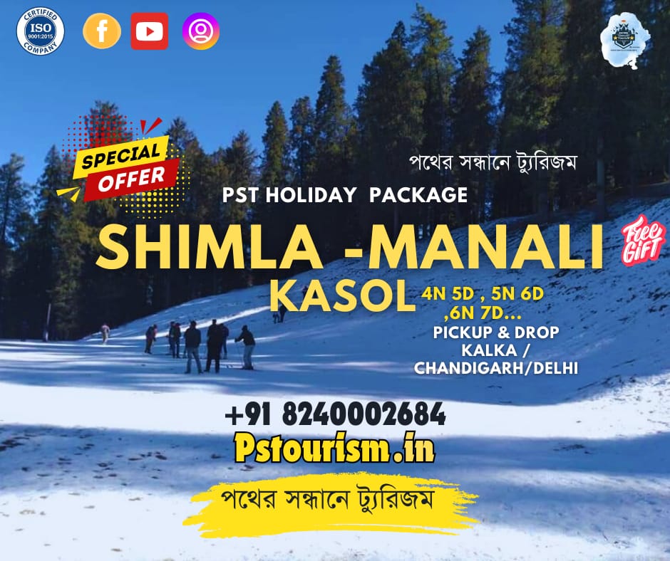 Book your 4N/5D Himachal trip with PSTourism—ISO 9001:2015 certified. We ensure safe transfers, verified stays, and a smooth travel experience.